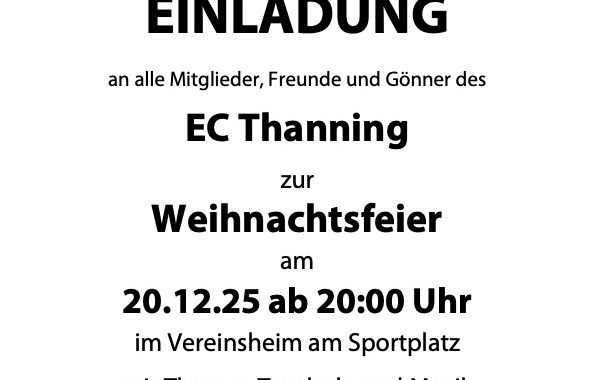 Die Weihnachtsfeier findet am 20.12.2025 ab 20:00 Uhr im Vereinsheim statt.